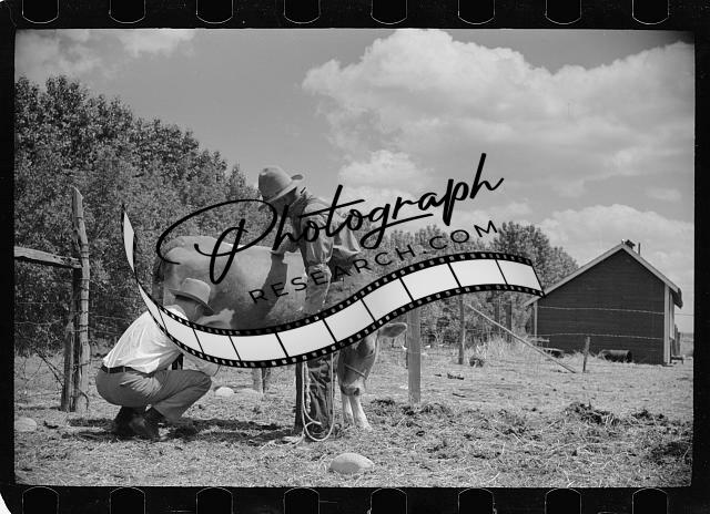 Veterinarian examining cows,Fairfield Bench Farms,Montana,MT,Summer 1939,FSA,1
