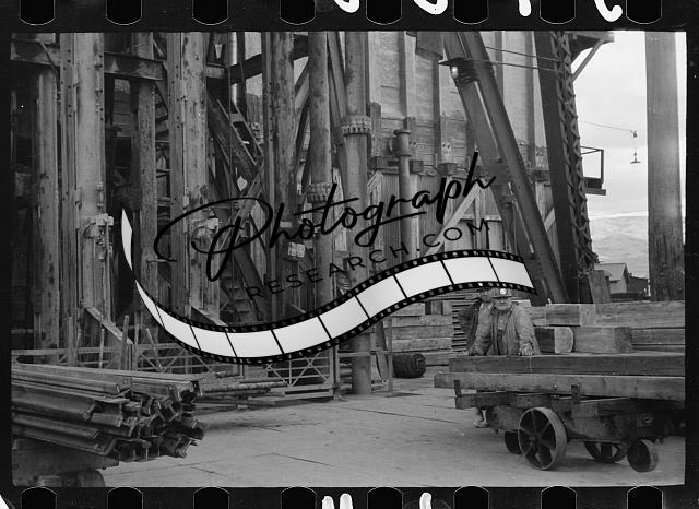 Miners at shaft of copper mine,Butte,Montana,MT,Arthur Rothstein,Summer 1939