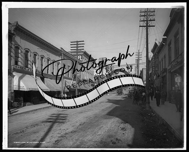 Lake Street,buildings,Welcome,Baker & Company,signs,Petoskey,Michigan,MI,c1906