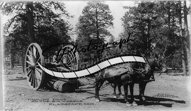 Hauling Logs,Big Wheels,Flagstaff,Arizona,AZ,c1910,Lumber Industry,Horses,Wagon