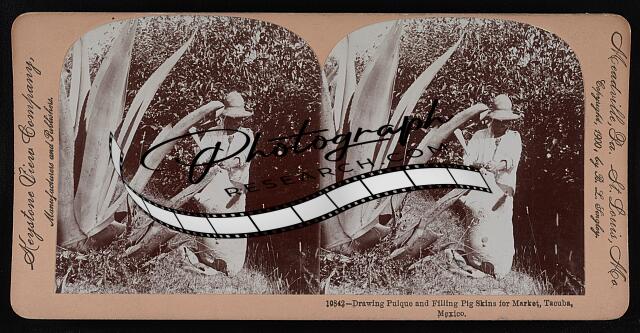 Drawing puique and filling pig skins for market, Tacuba, Mexico