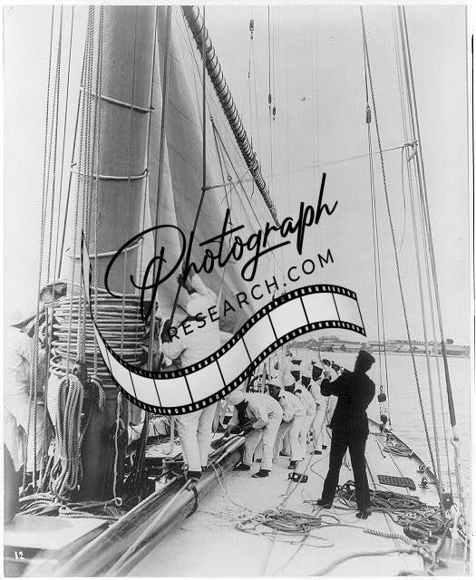 RELIANCE,sailing yacht,hoisting the mainsail,c1903