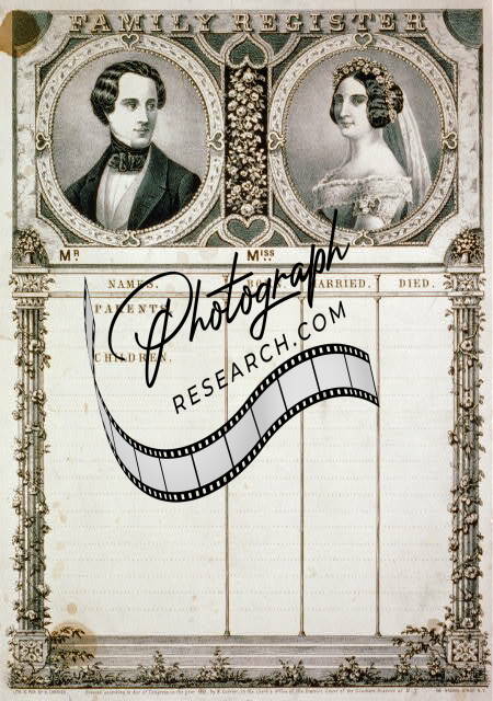 Family register,c1852,Currier & Ives,photograph,bride,groom,Parents,Children