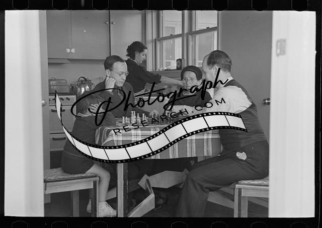 Playing Chess in Kitchen,Family Scene,Farm Security Administration,FSA,2