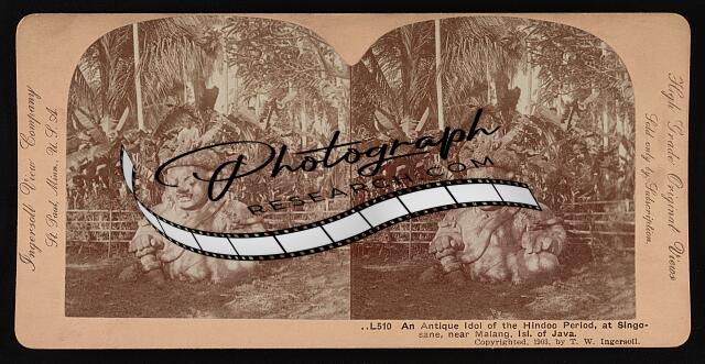 An antique idol of the Hindoo period, at Singosane, near Malang, Isl. of Java