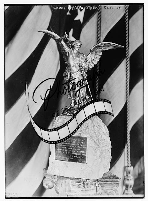 Mount Grappa Statue,American flags,sculptures,wings,swords,Bain News Service