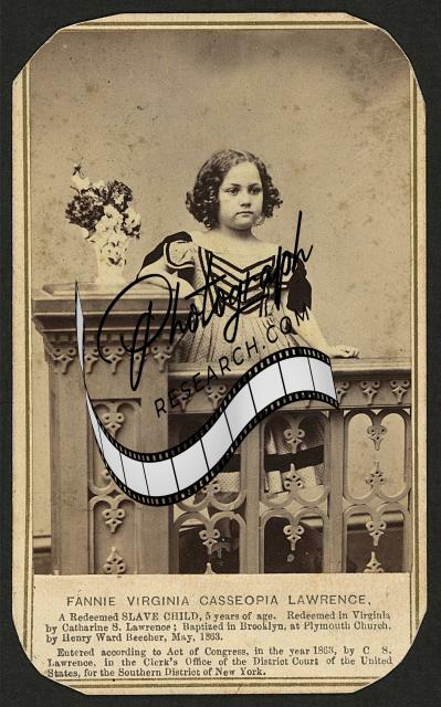 Title: Fannie Virginia Casseopia Lawrence, a redeemed slave child, 5 years of age ... / R. S. De Lamater, photographer, 258 Main St., 3 doors above Post Office, Hartford, CT.