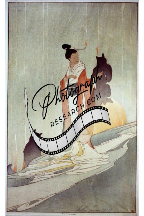 Fox Woman,Japanese Woman,Foxes,Traditional Clothing,c1916,Bertha Boynton Lum