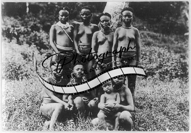 7 semi-nude hill women,a small child posed,India,1890-1923