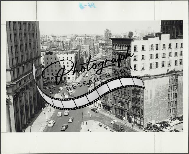 [[Aerial view of Broadway looking north towards Columbus Circle, Manhattan, New Y