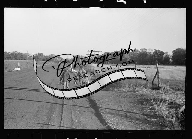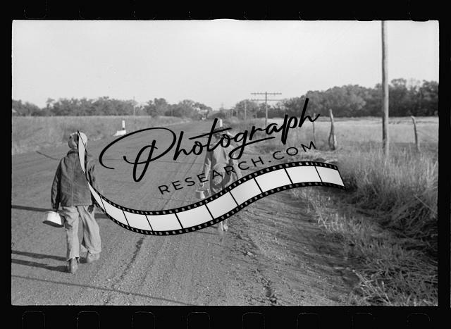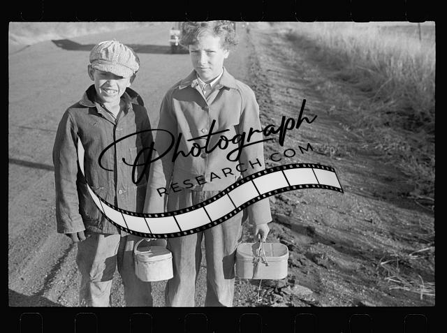 Farm children walking to one-room schoolhouse with lunch pails,Nebraska,NE,FSA