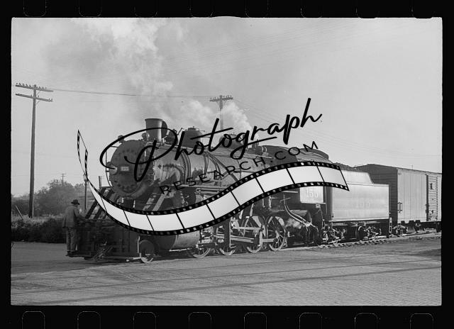Concordia,Kansas,KS,Locomotive,Train,October 1938,John Vachon,FSA,Small Town