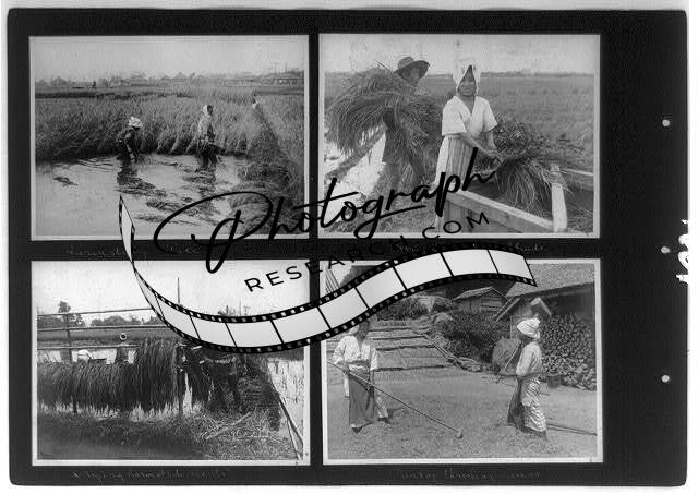 Harvesting Rice,Stripping Kernelhead,drying harvested plant,threshing,Japan,1915