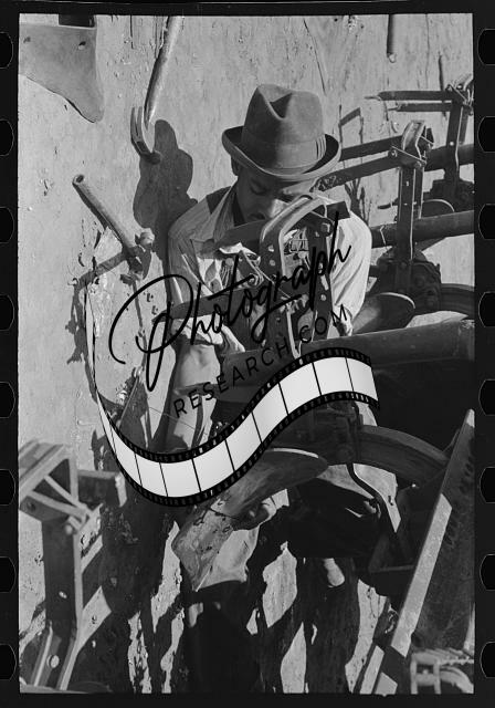 Title: Day laborers at work on tractor, large farm near Ralls, Texas