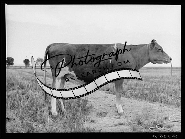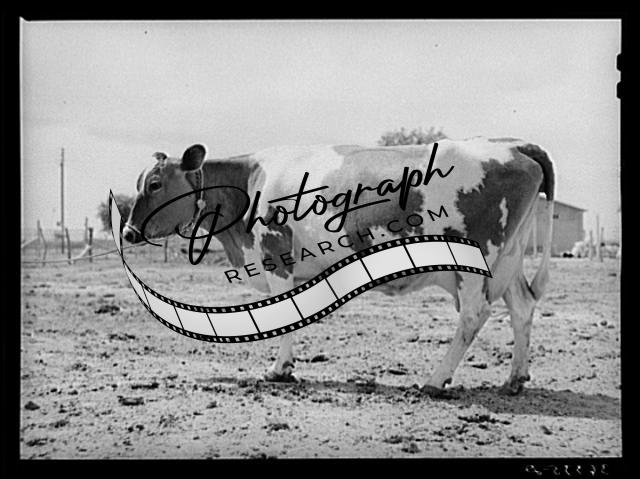Title: Jersey cow at the Casa Grande Valley Farms. Pinal County, Arizona. Name of the cow: Ronald's Sybil Frosty. Record: for 365 days yielded 14634 lbs. of milk. Test 4.88, butterfat 715.79 pounds