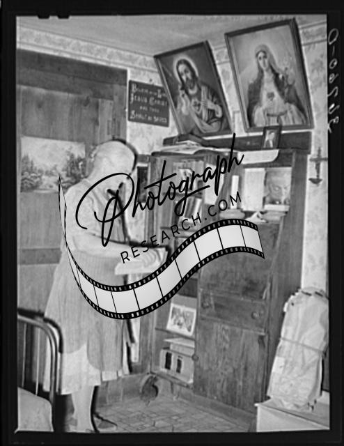 Title: Josie Caudill, homesteader's daughter, combs her hair. Pie Town, New Mexico