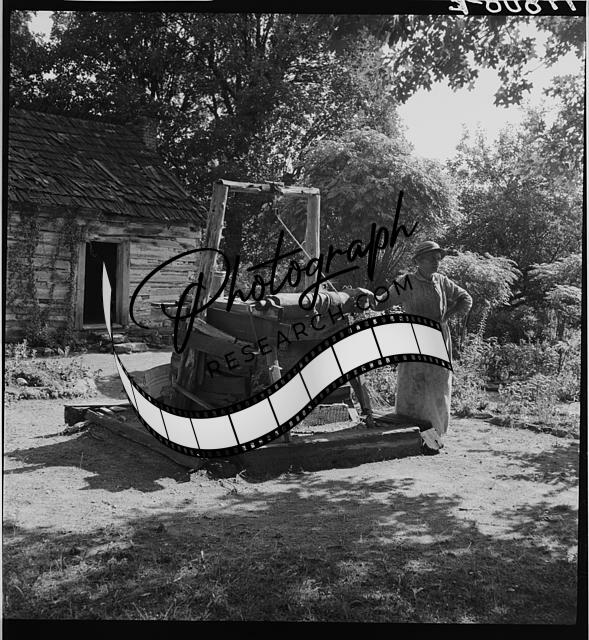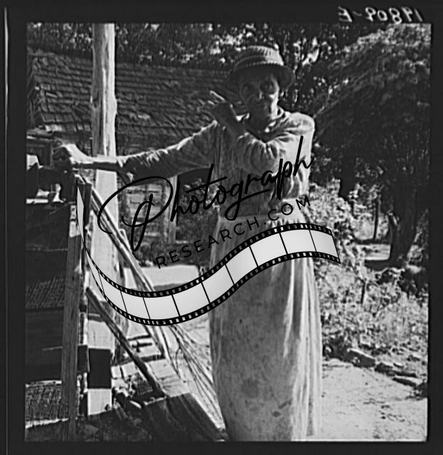 Title: Caroline Atwater, wife of Negro owner, has a well-swept yard