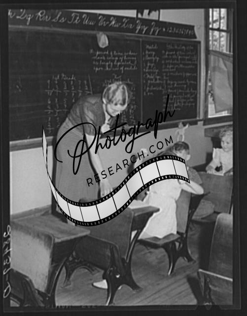 Title: Lois Slinker teaching the fifth grade in one-room schoolhouse. Grundy County, Iowa
