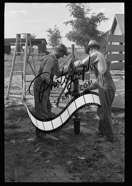 Title: Southeast Missouri Farms Project. Driving shallow well with heavy pipe