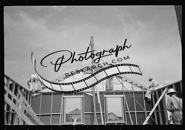 Title: Southeast Missouri Farms. Erecting gable end on house