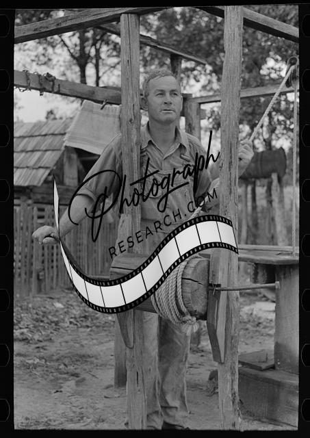 Cut-over farmer near Amite,Louisiana,drawing water from well,LA,FSA,1938