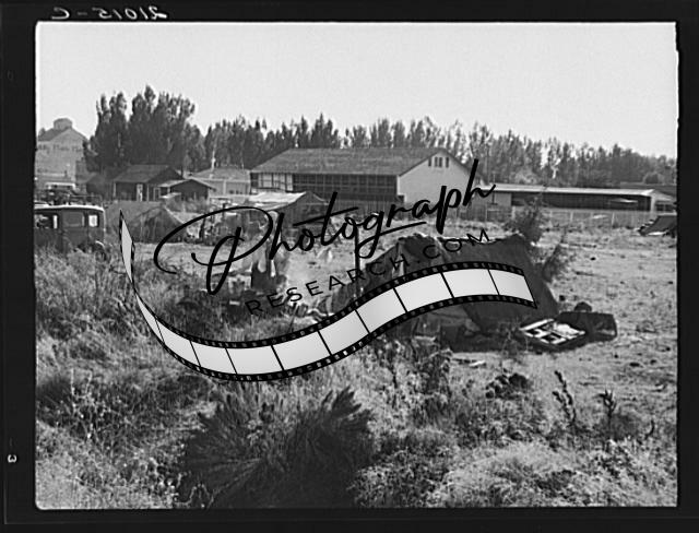 Title: Families camped on flat before season opens, waiting for the Farm Security Administration (FSA) mobile unit to open. No sanitation, no water. Near Merrill, Klamath County, Oregon