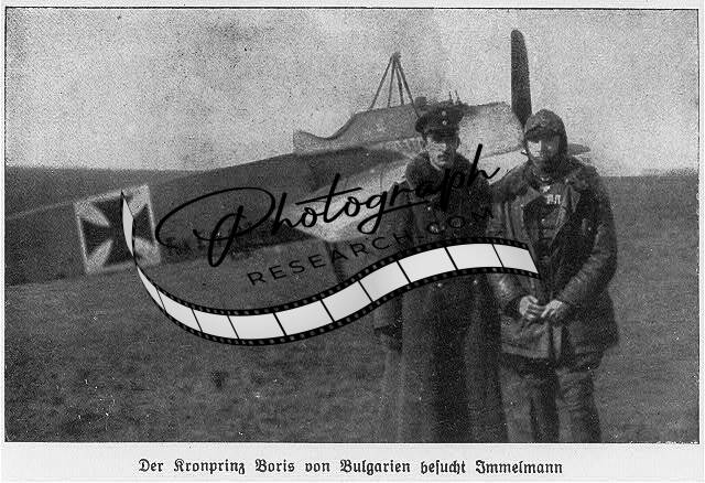 Max Immelmann and Crown Prince Boris of Bulgaria in front of airplane. 191-
