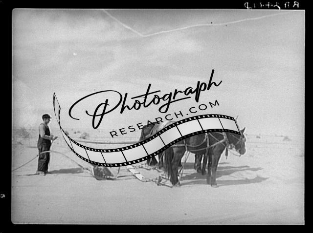 Title: A farmer listing his fields under the wind erosion control program. He receives twenty cents an acre for the work. Liberal, Kansas