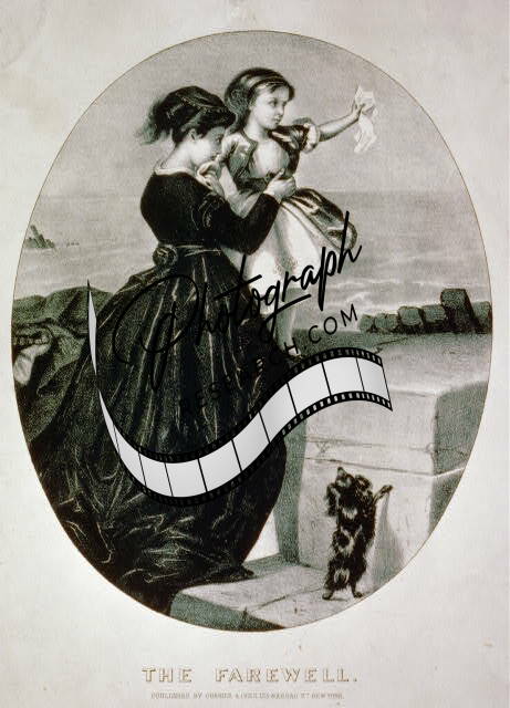 The farewell,1856-1907,Currier & Ives,photograph,woman,child,little dog
