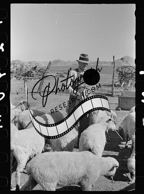 Rehabilitation Client Feeding Sheep,Ottawa County,Kansas,KS,Vachon,1938,FSA