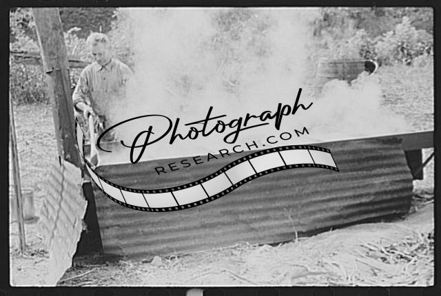 Farmer stirring sorghum molasses,Racine,West Virginia,WV,Boone County,FSA,1