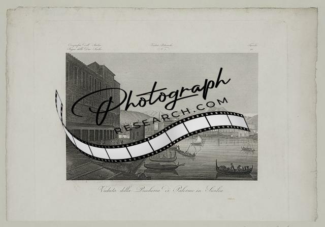 Veduta della pescheria di Palermo,Sicilia,Italy,Harbor,c1770,Boats,Fish Market