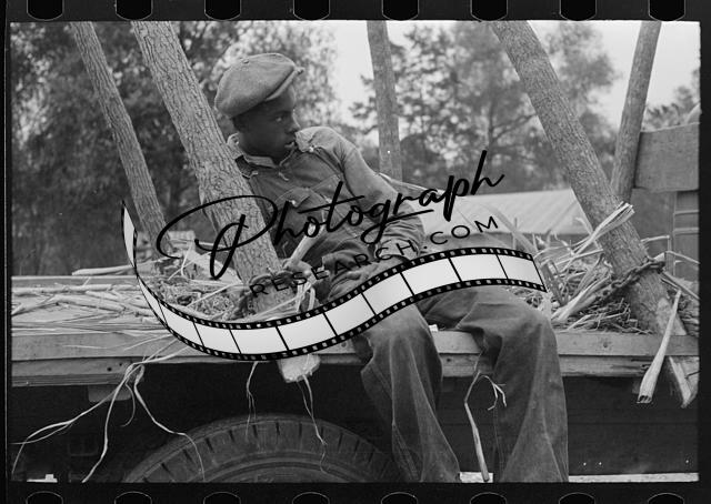 Boy sitting on sugarcane truck,Morganza,Louisiana,LA,Farm Security Admin,FSA