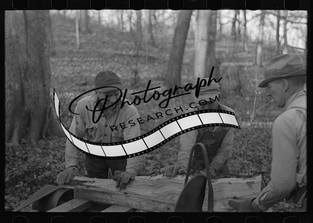 Farmers sawing wood for fuel in timber near Aledo,Illinois,IL,Mercer County,2