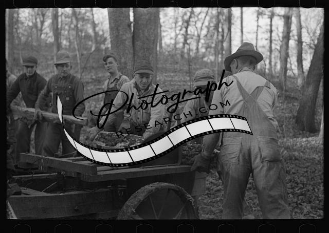 Farmers sawing wood for fuel in timber near Aledo,Illinois,IL,Mercer County,3