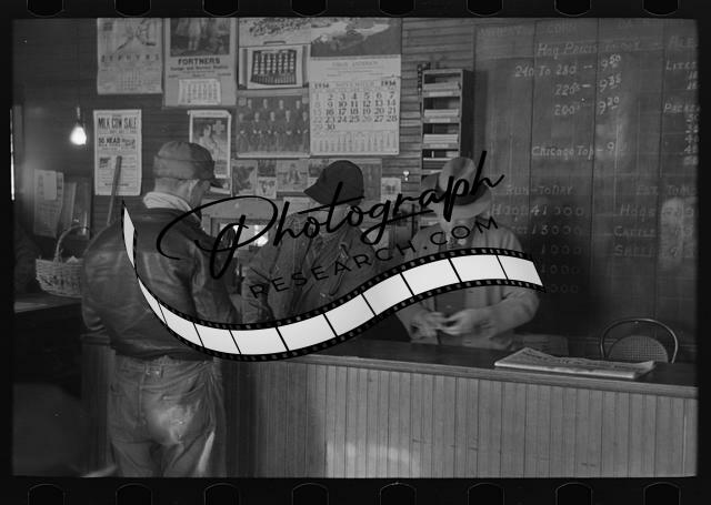Clerks,clients at the weighing-in room,stockyards,Aledo,Illinois,IL,FSA,1936