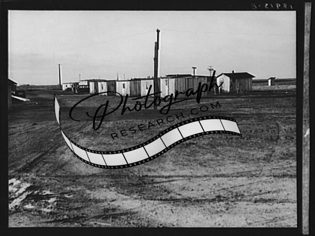 Title: United States government camp for migrants (Farm Security Administration), Farmersville, California. Prefabricated steel dwellings 'one step up from a tent' replace the use of tents in the newer California camps