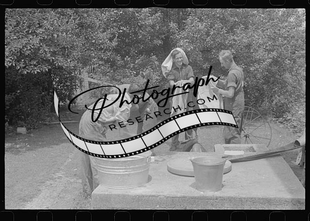 Getting ready for dinner during wheat harvest,central Ohio,OH,August 1938,FSA,1 1