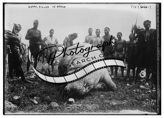 Hippopotamus,killed,animals,hunting,safari,men,Africa,portrait,Bain News Service