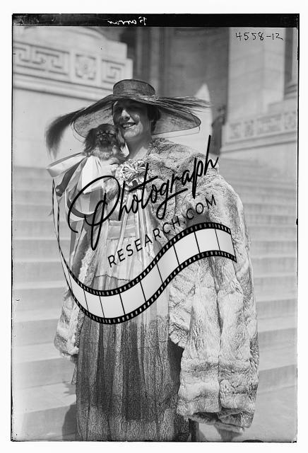 Geraldine Farrar,1882-1967,American soprano opera singer,pet dog,fur coat