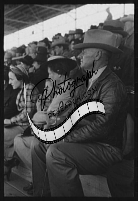 Title: Spectators at a tense moment during the rodeo at the San Angelo Fat Stock Show, San Angelo, Texas