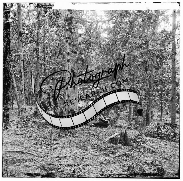 Caption from negative sleeve: Federal Breastworks in the woods on Culp's Hill, Gettysburg.