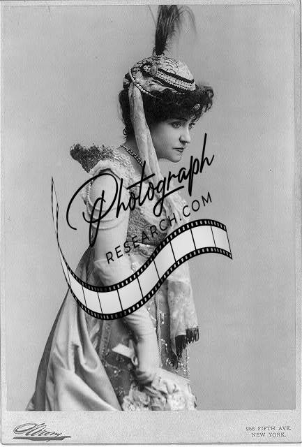 Bianca Lyons,1902,leaning against pillar,hat,dress/gown