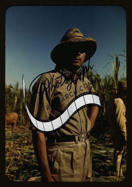 Man,sugar cane field during harvest,agricultural laborer,worker,Puerto Rico,1942