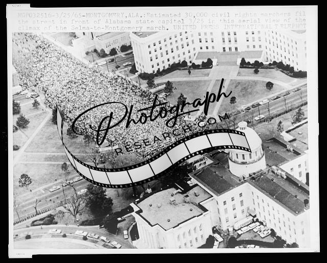 Estimated 30,000 civil rights marchers fill the street in front of Alabama state capitol