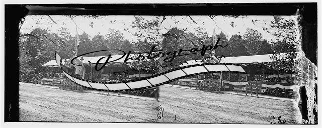 Presidential reviewing stand,guests,guard,Grand,Army,streets,Washington DC,1865