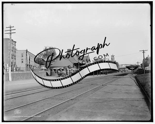 Boston,Maine Railroad station,B &M RR,building,street,Malden,Massachusetts,c1906