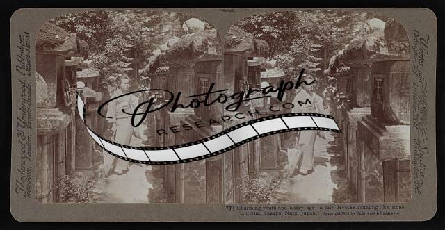 Charming youth,hoary age--counting the stone lanterns,Kasuga,Nara,Japan