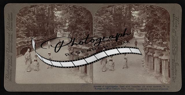 Avenue of cryptomerias old stone lanterns,N. Kasuga-no-Miya Temple,Nara,Japan