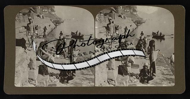 Long-haired,ash-besmeared fakirs on the banks of the Ganges,Benares,India